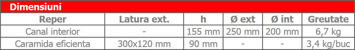 • canal interior pentru cosuri de fum rezistent la actiunea agentilor corozivi rezultati in urma arderii