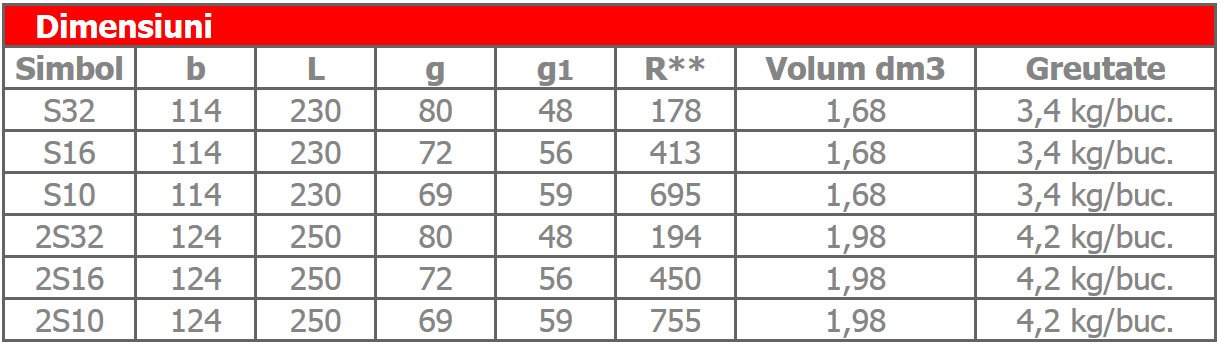 Nota: Cota R** este raza cercului interior realizat prin zidirea cu un rost de 2 mm